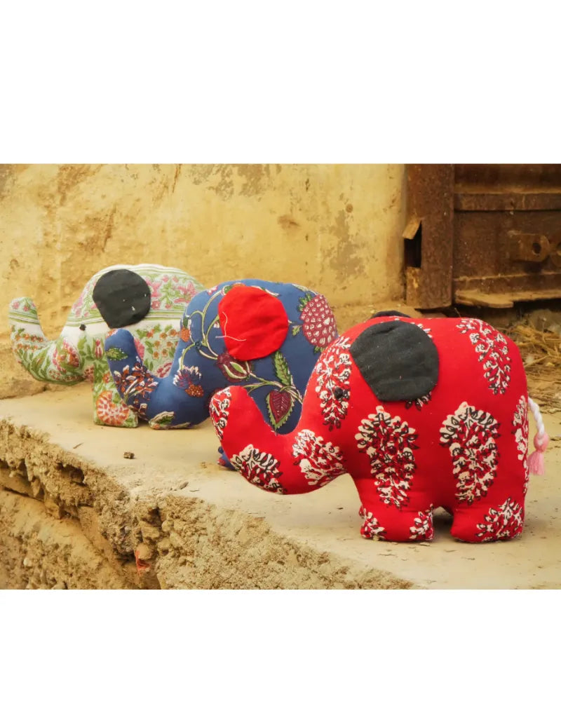 The sustainable elephant toy, handcrafted by rural women artisans and made from 100% cotton fabric.