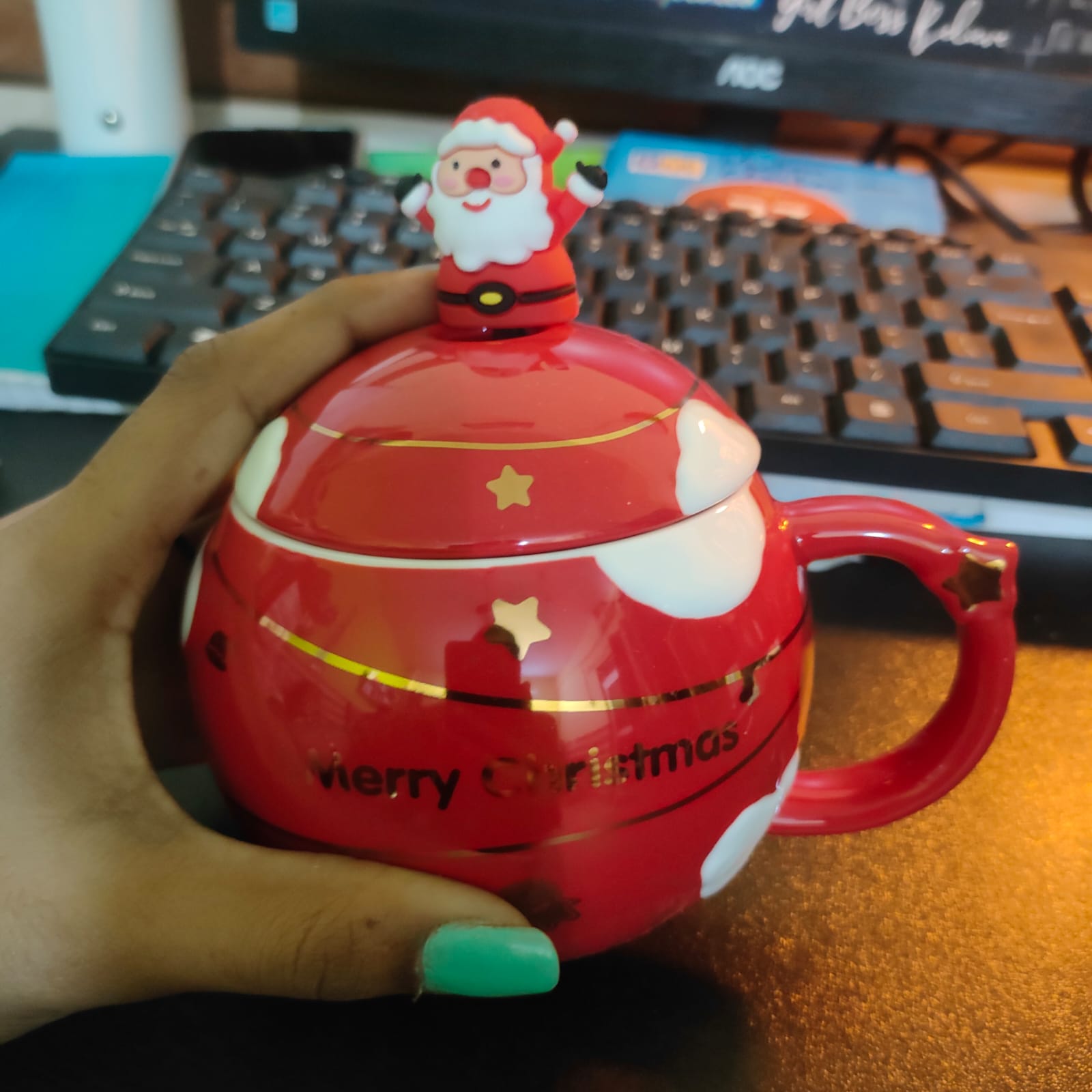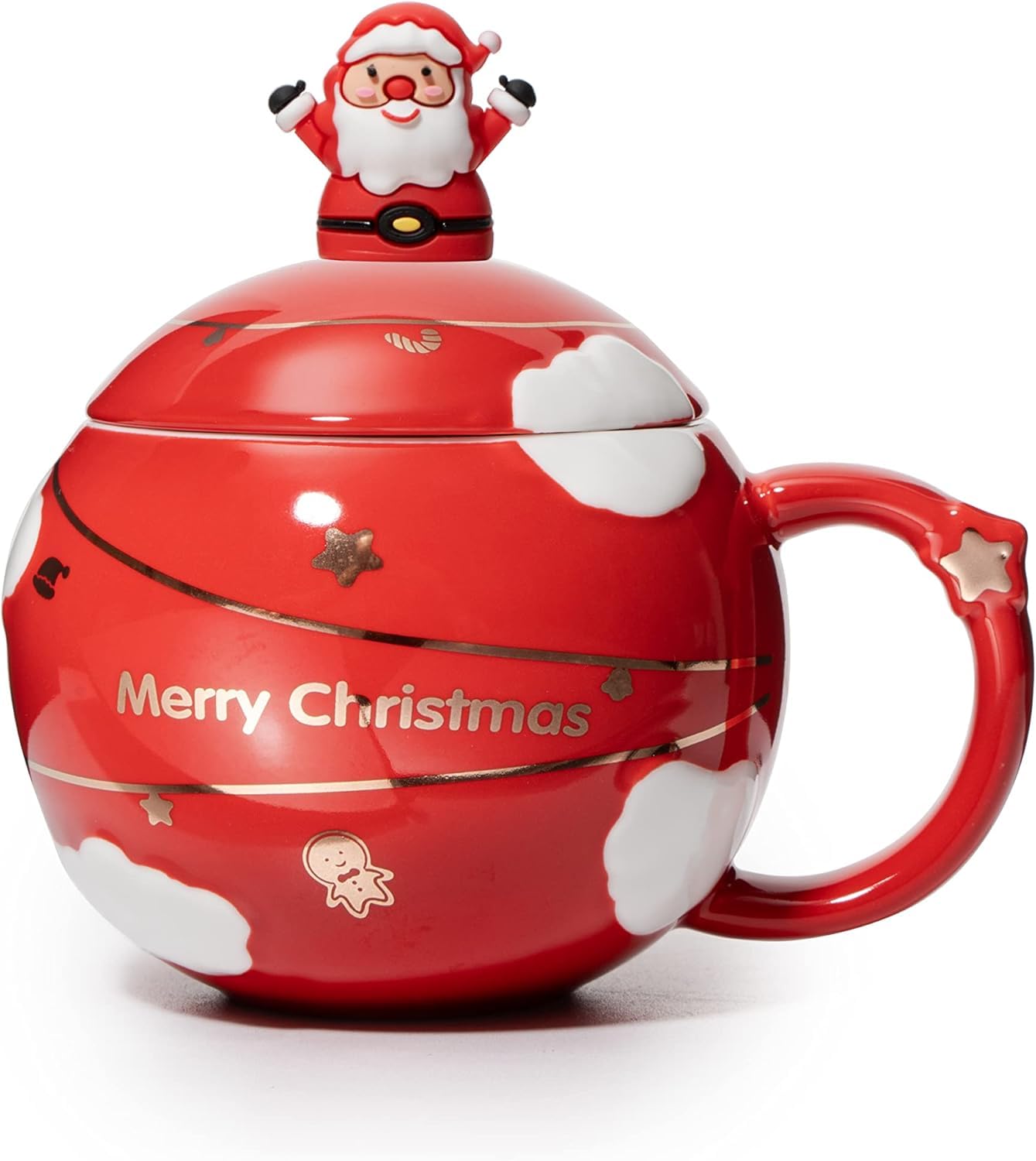 Christmas and Birthday Gift, Cups and Mugs, Christmas Mug, Mugs for Gift, Ceramic Mug, Coffee Mug with Lid, Cute Mugs, Mug with Lid & Spoon (400ml - Red)