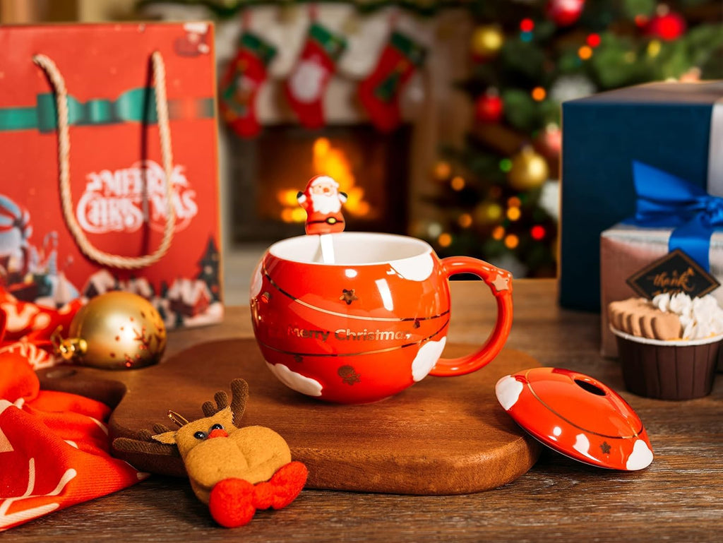 ● Unique Design This Christmas tea cup features unique surface treatment, which makes its color bright and the pattern clear, even after a long time, it will not fade or disappear. The tea cup comes with a silver Santa style spoon for easy mixing as well as a lid that matches the cup shape. The cup lid is designed with a spoon hole to allow the spoon to fit in and prevent dust from being scattered.