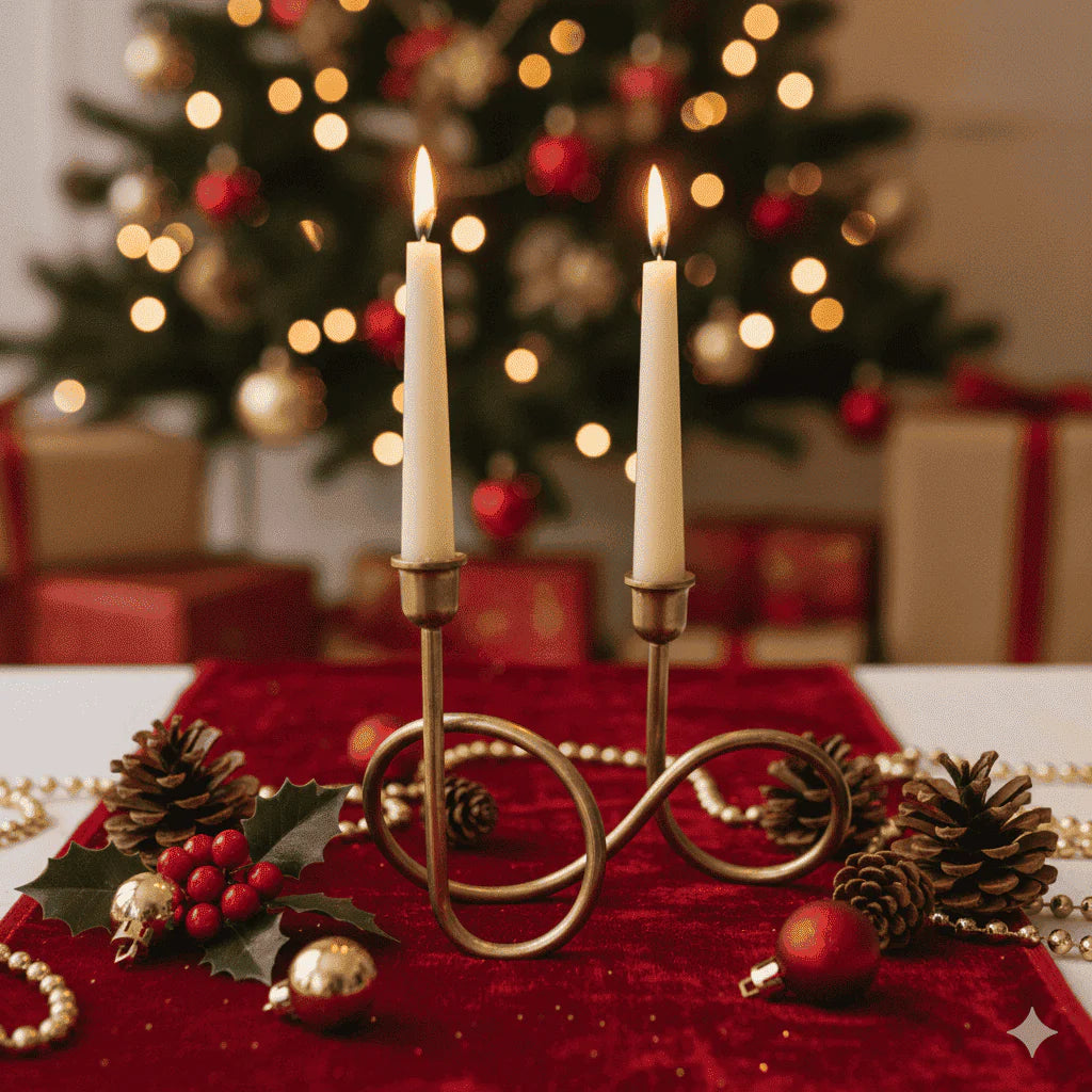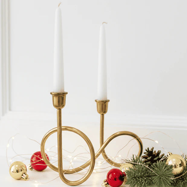 Add a touch of contemporary elegance and splendid artistry to your holiday centerpiece with the BOAIN, modern brass infinity loop candlestick holder by SWEN. This unique double holder features a beautiful, continuous looping design, perfect for those seeking a sophisticated, sculptural element in their Christmas decor. Designed to hold two standard taper candles at slightly different heights, BOAIN is ideal for the Christmas dining table, mantelpiece, or console table. BOAIN creates a focal point even when not in use, owing to its reefined gold finish that complements both warm, traditional holiday palettes (reds, greens) and cool, modern winter themes (whites, blues). Crafted from smooth metal tubing bent into an "infinity" loop, BOAIN gives a very rich aesthetic to every set-up it is added to. Its clean lines and simple geometry give it a distinct Scandinavian (minimalist) or Mid-Century Modern feel. Also, the continuous loop provides a sturdy, balanced base for the two candle cups. Create a dynamic glow and a stunning centerpiece this holiday season with BOAIN by SWEN.
